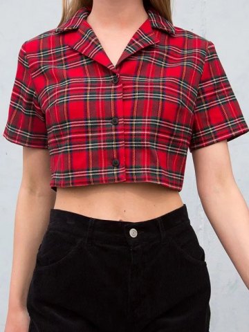 Blusa corta de manga corta a cuadros