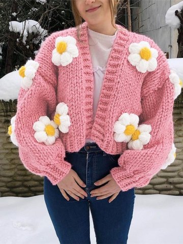 • EMMIOL Cárdigan corto floral de punto de ganchillo