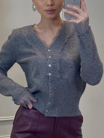 Cárdigan multicolor con cuello en V y ribete de encaje