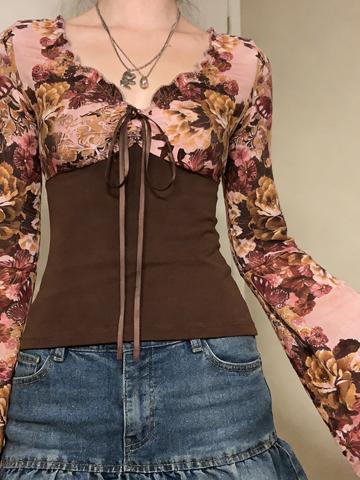 Camisa francesa vintage floral de manga larga