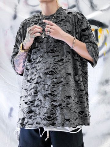 • EMMIOL Camiseta de manga corta desgastada de patchwork para hombre