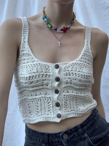 Estilo: Casual/Vintage/Calle/Y2K/Sexy/Vacaciones Contenido de la tela: Viscosa, PBT, Nylon Tipo de ajuste: Corte ajustado Escote: Cuello en U Longitud de la manga: Sin mangas Diseño: Con cierre de botón en la parte delantera, Diseño hueco de ganchillo