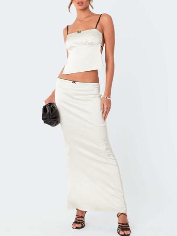 • EMMIOL Conjunto de top de tirantes anudado sin espalda de satén y falda larga dividida