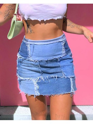 Falda de mezclilla deshilachada con patchwork