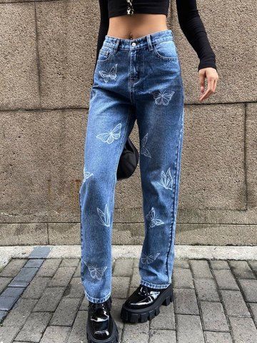 Jeans Mom con estampado de mariposas