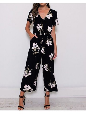 Mono de pierna ancha con cintura elástica con cordones y estampado floral