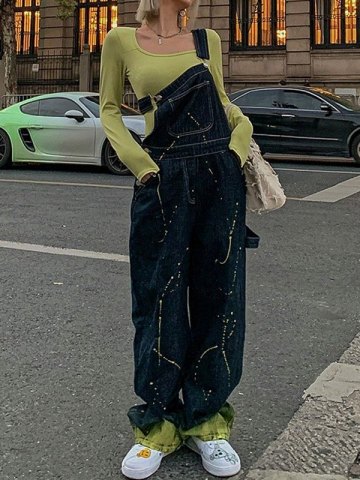 • EMMIOL Overol vaquero estilo boyfriend con estampado de salpicaduras