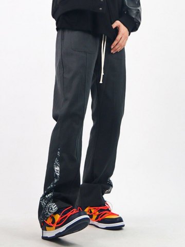 Pantalones acampanados con estampado de paisley y patchwork para hombre