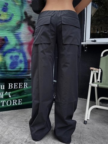 • EMMIOL Pantalones cargo baggy paracaídas negros