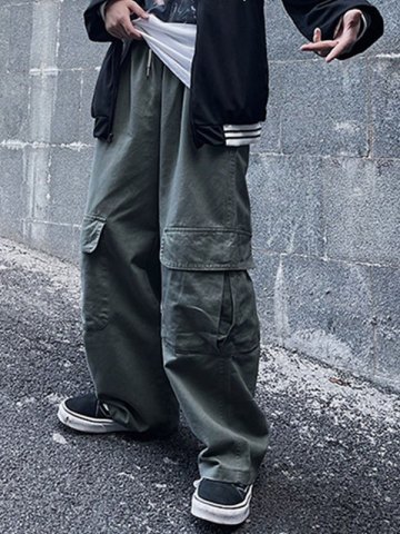 Estilo: Casual, Calle Color: Negro, Cebolleta Material principal: Mezcla de poliéster Tipo de ajuste: Regular Diseño: Bolsillos funcionales, Cintura elástica con lazo, Cintura de talle medio, Detalle cosido en contraste