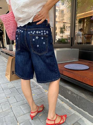 Pantalones cortos vaqueros con bordado de flores