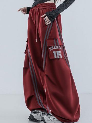 Pantalones de trabajo de pierna ancha con bolsillos y rayas