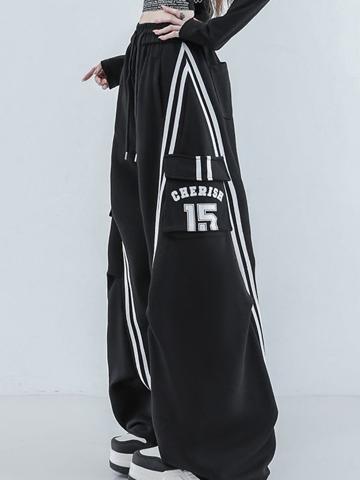 Pantalones de trabajo de pierna ancha con bolsillos y rayas