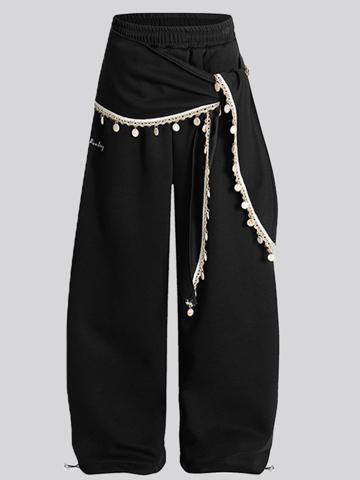 • EMMIOL Pantalones deportivos con cordones decorativos en 3D