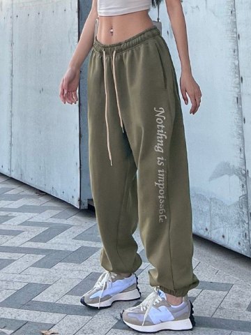 • EMMIOL Pantalones jogger holgados con estampado de eslogan
