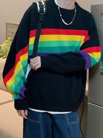 Suéter tipo jersey con rayas arcoíris para hombre