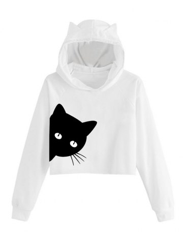 • EMMIOL Sudadera con capucha y orejas de gato con estampado de gato