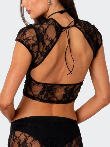 Descripción: Los detalles abiertos en la espalda siempre agregan más sensualidad a la apariencia, y está de moda esta temporada. Estos tops cortos están confeccionados con tela de encaje transparente, cuentan con una espalda extra abierta con un diseño de cierre de correa ajustable.
