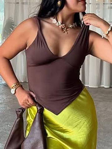 • EMMIOL Top de tirantes con cuello en V profundo y lazo de color liso