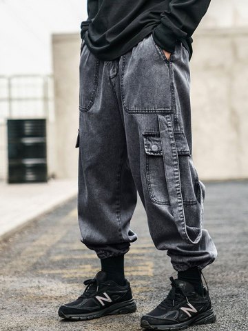 Estilo: Casual, Calle Color: Gris oscuro, Azul Material principal: Algodón Tipo de ajuste: Ajuste de skate Diseño: Bolsillos funcionales, Cierre de cremallera y botón, Cintura elástica de tiro medio, Cordón en los puños