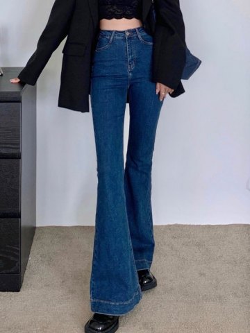 • EMMIOL Vaqueros de campana ajustados de cintura alta vintage