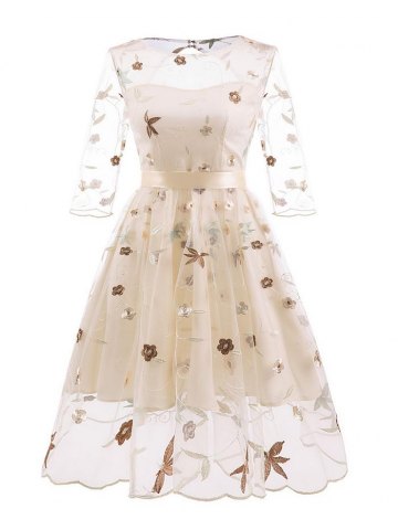 Vestido de tres capas de malla de encaje bordado con mangas 3/4 de organza